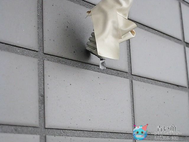 当日は風が強く、天気予報では風速5メートルとのことでしたが、粘り気があるので、落ちることなく、ドレンホースの先端にくっついたままです。