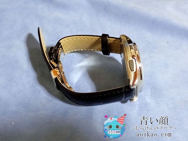 ベルトの長さを、腕にピッタリ合うように合わせると、時計を腕に付けた際、バックル部分の金具が腕に食い込み、痛くなってしまうので、緩めに調整するのが良いと感じました。