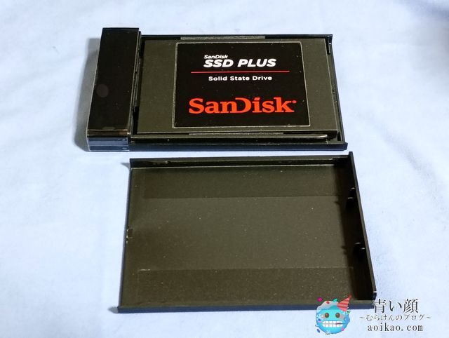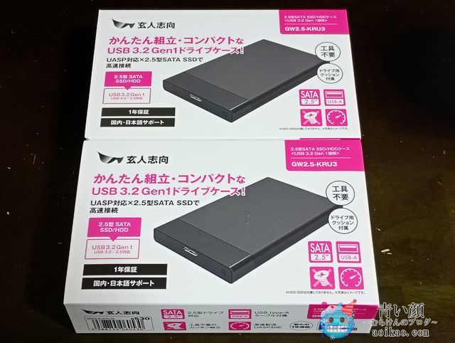 しかし、稼働時間や読み書きを行った容量も、それほど多くないため処分するには勿体ないと感じ、玄人志向製の2.5インチHDD・SSD外付けケース「GW2.5-KRU3」を購入し外付けのドライブとして使用することにしました。